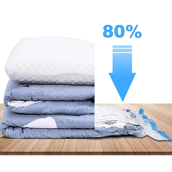 Rămâneți fără spațiu de depozitare? Economisiți până la 80% spațiu cu sacii noștri de depozitare în vid! Pur și simplu împachetați – sigilați – și aspirați aerul pentru a reduce articolele voluminoase precum hainele, păturile și lenjeria de pat. Mai mult spațiu, mai puțină dezordine!