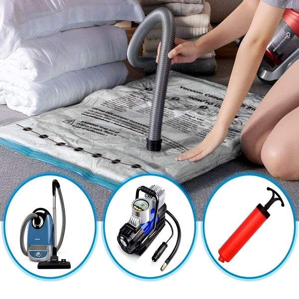 Nu sunt necesare unelte speciale—doar folosiți orice aspirator pentru a comprima sacii în câteva secunde! În plus, sunt reutilizabili, astfel încât să puteți depozita și proteja hainele de nenumărate ori.