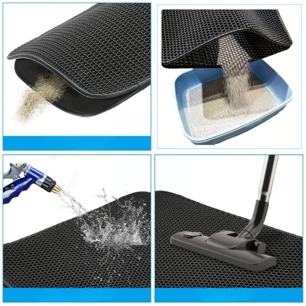 🐾 Când pisica ta părăsește litiera, așternutul și nisipul cad prin găurile covorașului și sunt capturate.